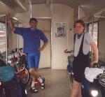 vergeblich. Die Brücke war aber schön trocken und eine imposante Konstruktion: freitragend und für 8 Tonnen ausgelegt, alles aus Holz. Leider nicht ruhig: Heerscharen von johlenden Kindern kamen aus dem Wald und zogen auf die andere Seite zum Bahnhof. Es war schwer, ein Nickerchen zu halten. Als wir dann doch endlich los wollten, war Tinkas Rad wieder platt. Wir behalfen uns aber zunächst mit Aufpumpen. Als wir dann doch endlich los wollten, war Peters Rad platt. Ein winziges Loch auf der Außenseite des Schlauches, im (kevlarverstärkten) Mantel nichts zu finden: sollte etwa einer dieser Rotzlöffel mit der Nadel ...? Das wird sich nie klären lassen. Jedenfalls war das die einzige Reifenpanne an Peters Rad.