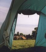 Außerhalb der Ortschaft, es dämmerte schon, wollten wir einen passablen Zeltplatz suchen, aber das war garnicht so einfach. Ein uraltes Paar, durch dessen Bauernhof die Landstraße führte (die einige Schweizer für eine Rennbahn zu halten schienen, aber tiefergelegte Golffahrer gibt es ja auch bei uns zur Genüge...), wies uns dann den Weg zu einer geeigneten Wiese, die nicht allzu steil war.