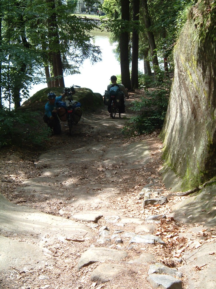 ...denn es geht steil hinunter zum See.