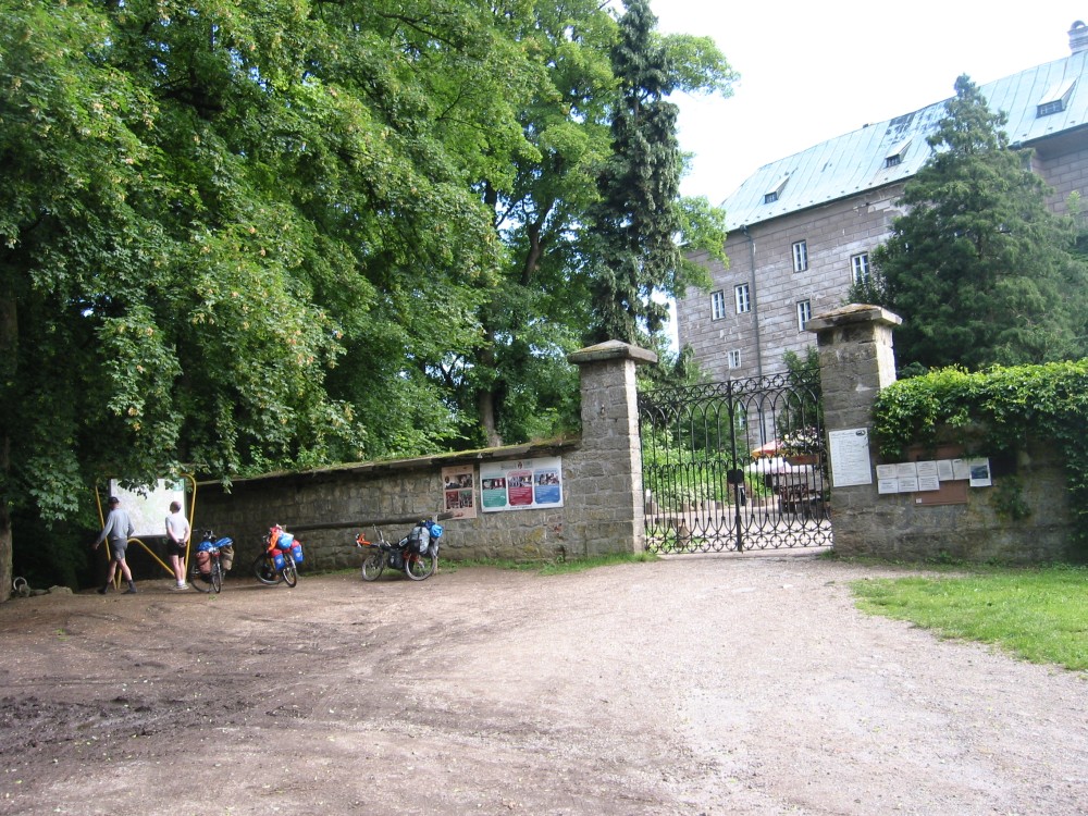 Auch vor Burg Houska steht eine der vielen Orientierungstafeln und wird studiert.