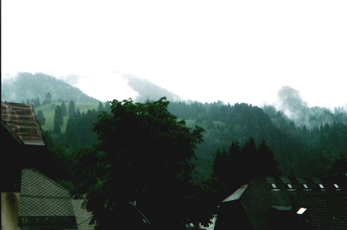 Die Berge verschwinden in den Wolken.